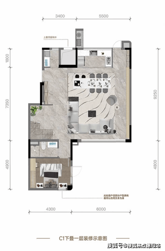 C1户型|叠拼|建面约238㎡| 四室两厅四卫