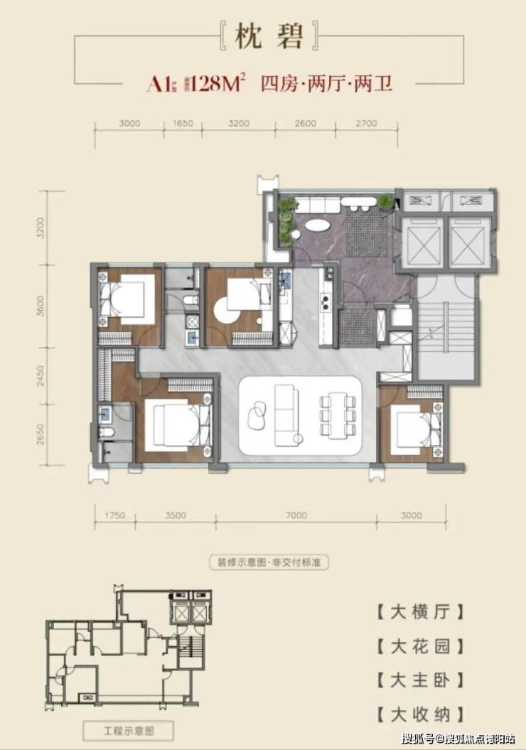 升级点:双套房设计+7.2米方厅,主卧预留衣帽间,三卫配置解决多代起居冲突;