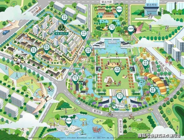 ?规划杜宇广场、开明广场、杜鹃花语等七大景观节点,包含约5.9万㎡中央大草坪、约1.7万㎡核心水景,未来可承载音乐节、望丛赛歌会等文化演艺活动,融合亲子休闲、文化体验与研学科普功能
