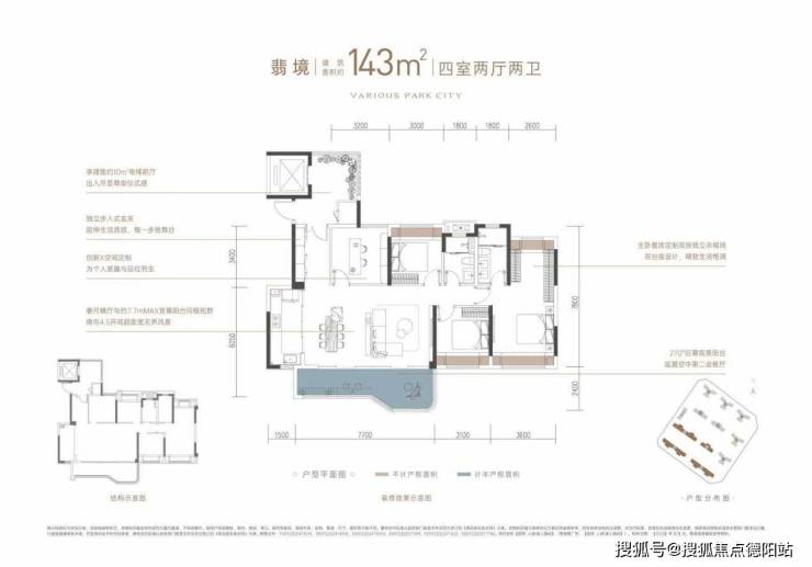 建面约143㎡的户型,采用LDK一体化设计,客厅开间视距达到9.2米,建面约14㎡弧形阳台,最宽处达到2.4米,家庭交互空间宽敞舒适,建面约31㎡主卧豪华套房带双面盆主卫、独立衣帽间,私密奢享,尽显家主地位尊崇。