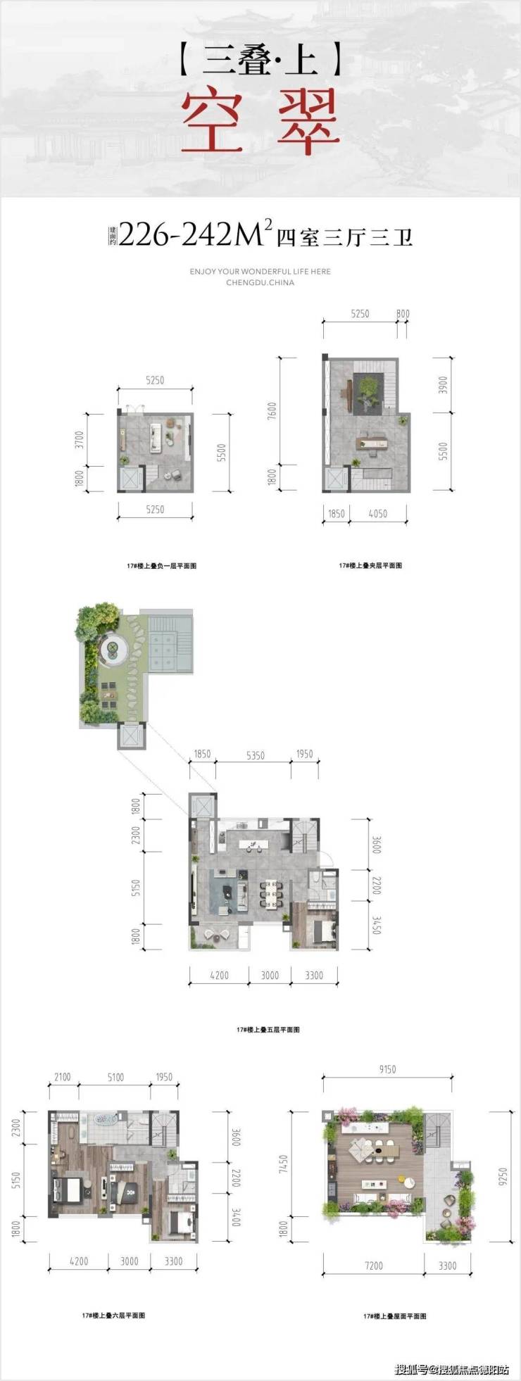 【三叠】上叠 四室两厅三卫| 约226-242㎡