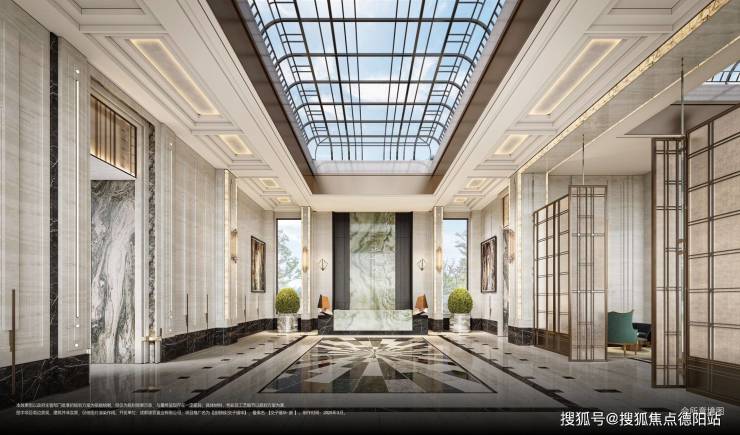 顶奢酒店式度假园林:复刻亚特兰大瑞吉经典元素,提取摩洛哥安缦珍纳标志性水轴,奢石与水系融合,营造殿堂级漂浮水苑。