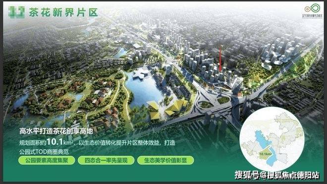 茶花新界片区:规划面积约10.1k㎡,以生态价值转化提升片区整体效益,打造公园式TOD商圈典范。