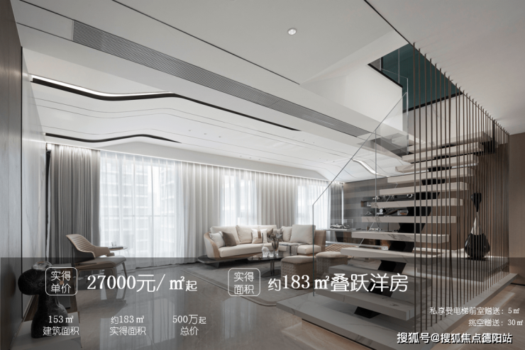 实得单价2.7万起,总价450-600万起买147-167㎡跃层产品(实得177-200㎡)