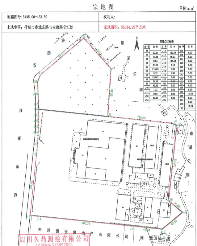地块位于雍城东路与安康路交汇处,与什邡市公安局一街之隔,与雍湖公园接壤,面积82.97亩,1.0≤容积率<2.6,建筑密度<30%,绿地率>35%,建筑高度<60米,起拍价251万元/亩,保证金1.0413亿,起始楼面价约1448元/㎡。