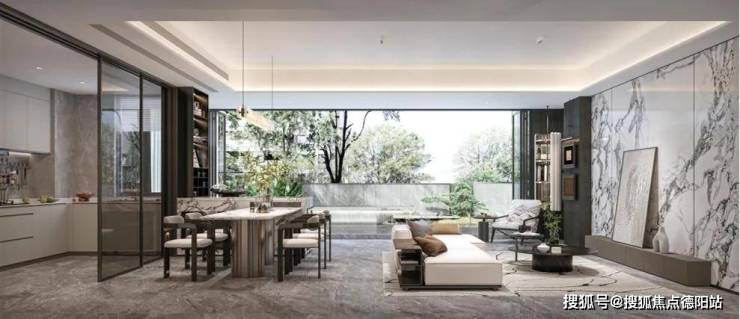 作为区域仅有的宋风园林,为实现更闲雅从容的文艺化生活体验,项目整体取意于南宋名画《四景山水图》,提取其中艺术场景并对其进行现代化还原,串联3大组团匠造一轴九园,山石成景,叠水成画,从进厅到登堂再到游廊、归园、入宅,层层递进,共同构成了眼前这一幅可居、可游、可行、可望的现实主义画卷,业主在此可以煮茶品茗、且听风吟,也可以亲子互动、会客交友,动静皆宜又不失品位。
