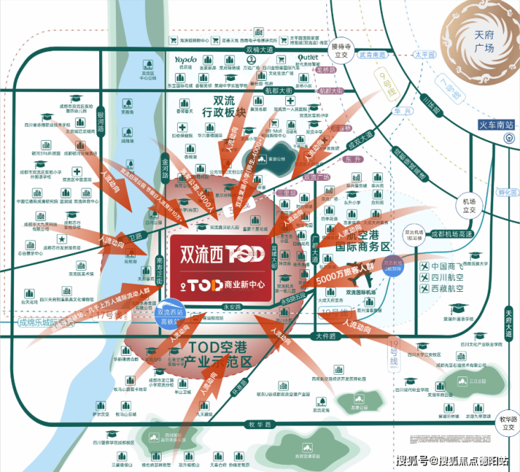 4、距离成都双流国际机场(年人流量超3000万人次)仅有一站,吸引全球各地的商旅人流?