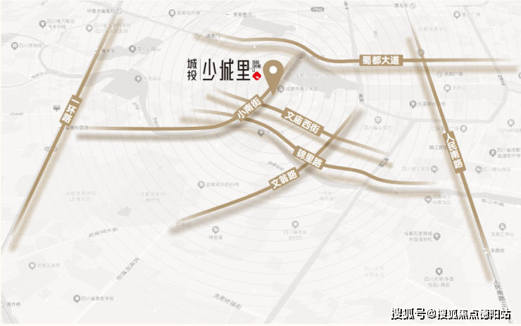 项目位于城市内环青羊区,为“中优”战略重点实施区域,新城、源城双擎发展;板块地处蜀汉博览乐活线及青羊区中优区域规划重要单元,北连皇城坝,祠堂街,南连武侯祠、宽窄巷子等,聚集成都市区优质文游资源,教育资源,未来片区还将构建天府文化公园,打造文博创意集聚区和金融高端商务集聚区。