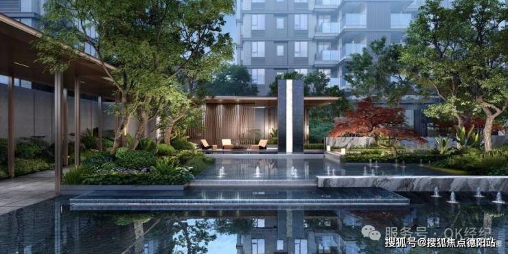 ✅宴水(迎宾水院):以水为主题,设置层级跌水、风雨连廊、漂浮平台等景观元素,营造出清幽雅致的氛围,让居民在归家途中就能感受到自然的宁静与美好。