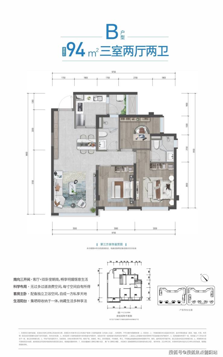 建面约94—110㎡新派臻装三居,入户玄关设计巧妙,LDKB户型空间布局(仅限建面约110㎡户型),餐、客、厨与阳台融为一体,营造出一种开放而通透的生活氛围,南向三面(仅部分户型)宽设计,套房式主卧配置,让年轻人的生活更具品质感。