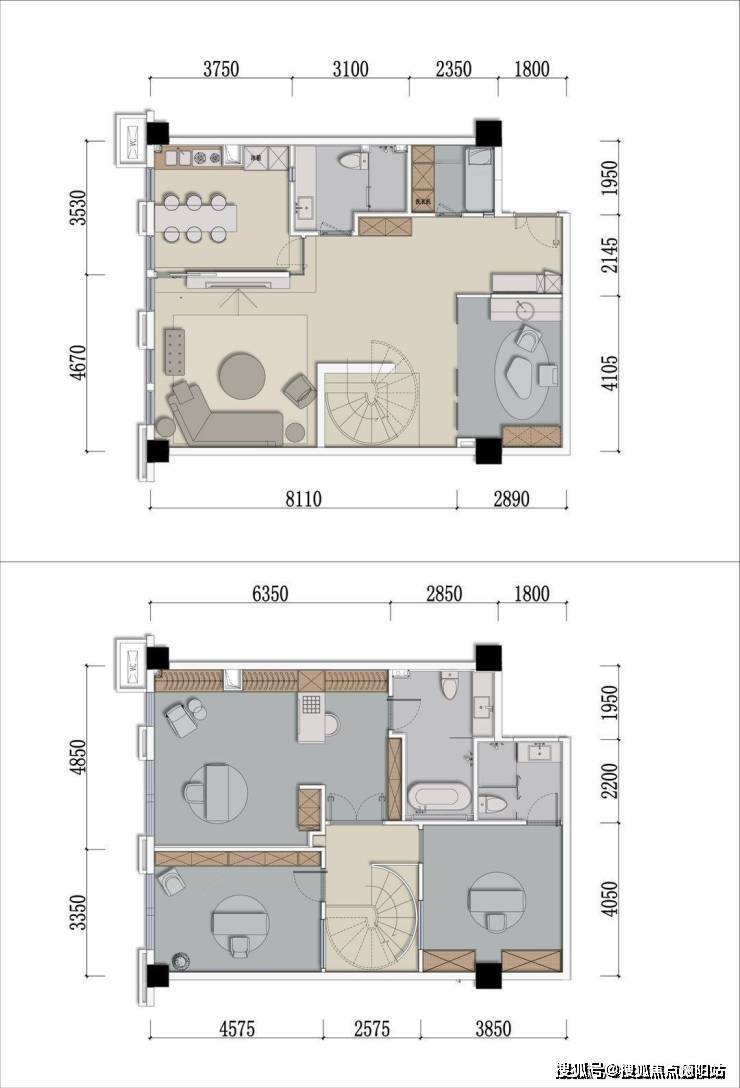 5、时尚的外立面:项目采用简约高级灰立面,拥有270度天幕视野,俯瞰天赋门廊开阔景界;