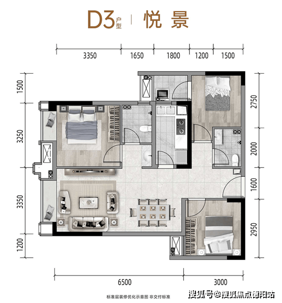建面信息:建面约86 / 91 /116㎡ 套三双卫