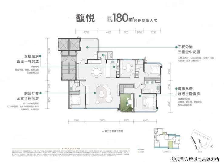 户型设计:仅139㎡和180㎡两种四房户型,层高3.1米。139㎡户型可改造为8.9米超宽横厅,主卧带浴缸;180㎡户型为7F临河洋房,享一线河景,配备悬浮花园、独立光厅等,实现“一户三院”墅居体验。