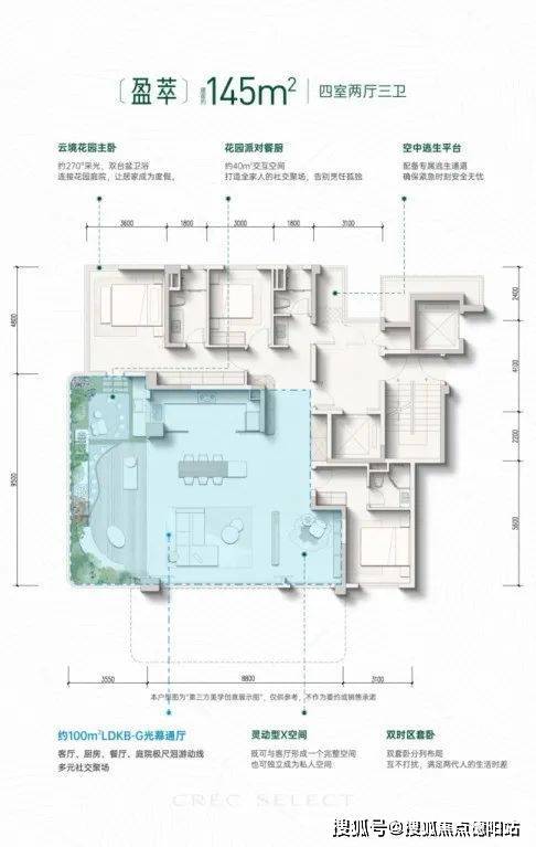 其一,高得房率,项目通过优化公区空间与结构设计,实现“使用面积增值”,在传统新规住宅20%板率基础上,可以多赠送35-45平的生态花园。