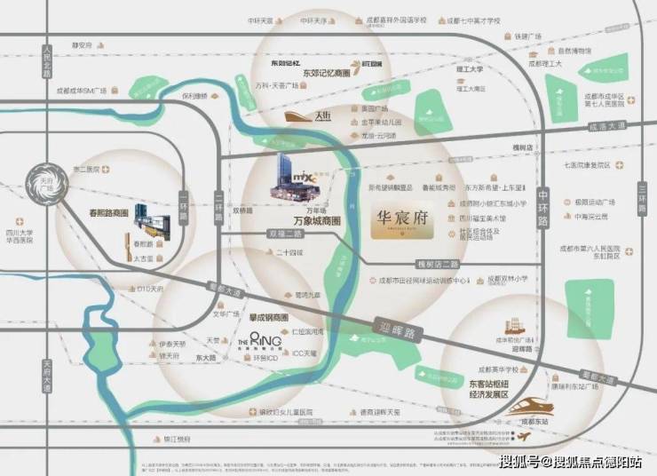 华润置地对主城核心价值的前瞻占位,作为2025年开年第一场土拍,也是槐树店板块第一次地价突破2万+,“开年第一枪”奠定主城价值锚地。华宸府择址万象城东极核板块,占据1817亩迎晖路城市更新区。这是成都三环内最后成片开发的黄金版图。