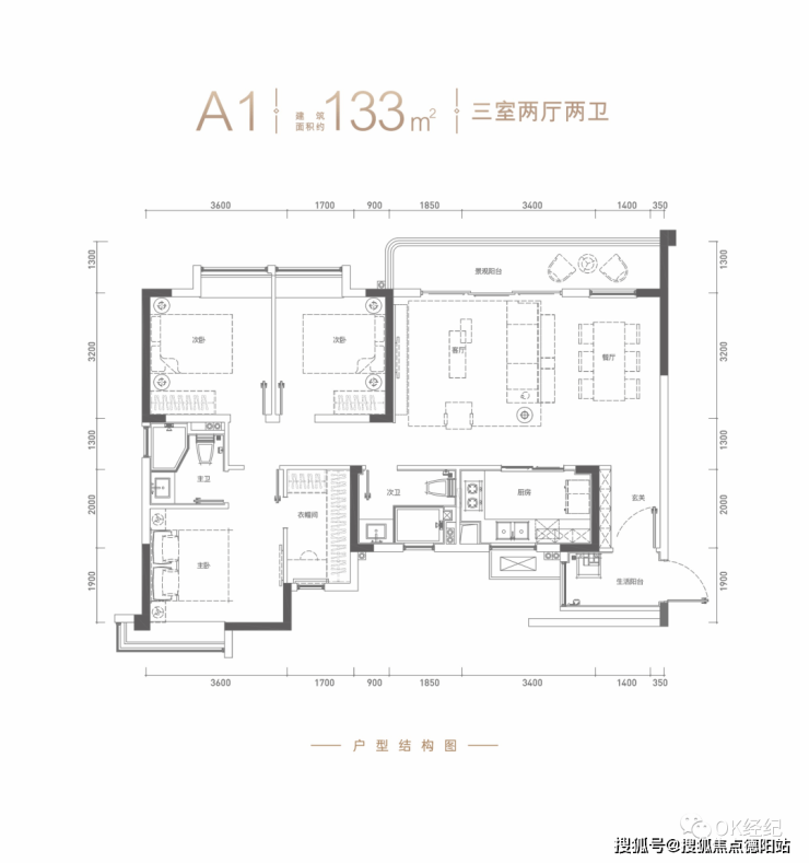 ☆A1 建筑面积约133㎡ 三室两厅两卫