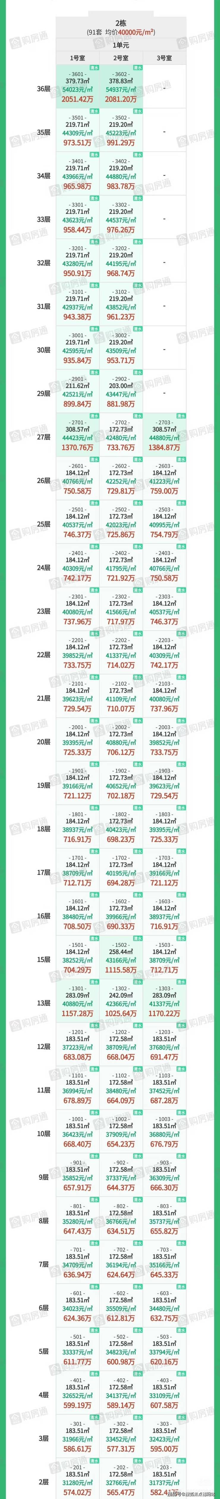 本次销售2号楼房源91套。