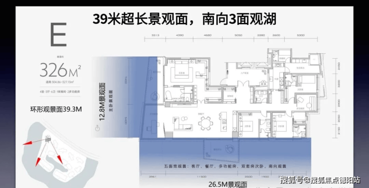 2.超宽观湖景观面,主功能区全部观湖
