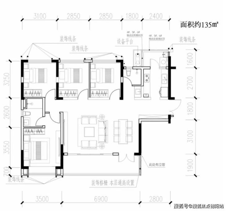•总层高:二期12-17F(一楼4.5米架空层无住宅)三期9-17F