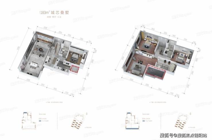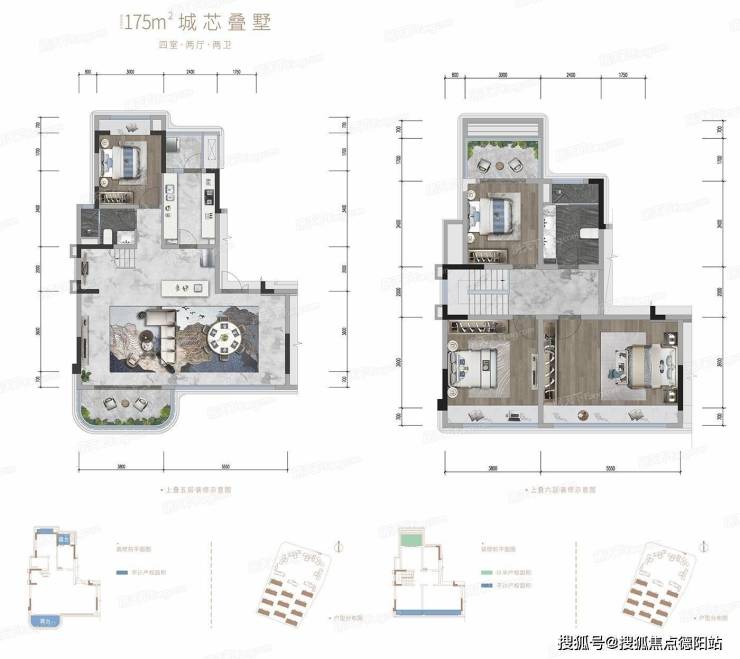 上叠:174㎡实得250左右,带屋顶花园约60平 总价:358万起