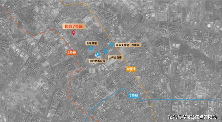 国宾区域已成为金牛区全新城市名片,汇聚成都市天府美术馆、当代艺术馆、川剧艺术馆、金牛国宾馆等城市级公共资源,且龙湖西宸天街、山姆会员商店、天府111等商业生活配套均在1公里范围内。