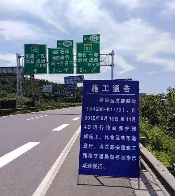 8月12日至11月4日间,历时3个月左右,京昆高速成都至绵阳段(原成绵高速),将进行路面洗刨换铺和微表处置。施工期间,施工区域路段将交替占用小客车道、客货车道和应急车道,实行单车道通行。
