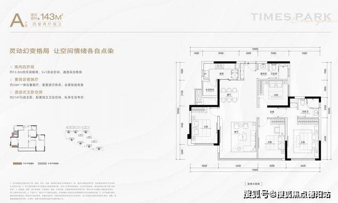 A户型/建面约143㎡四室两厅双卫
