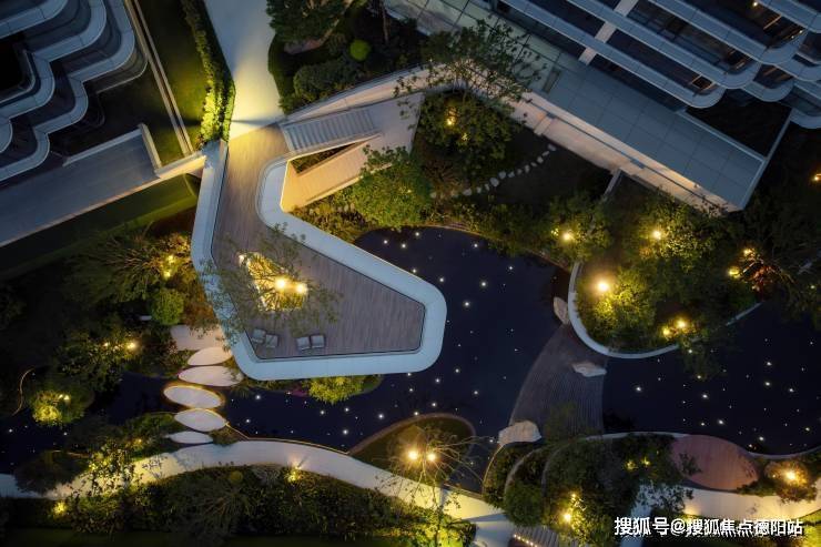 强调空间与景观的极致互动,打破建筑边界,通过设计将自然引入、光线渗透、空间互融等,实现架空层和浮岛花园无界连通,打造社区化的花园式生活场景。