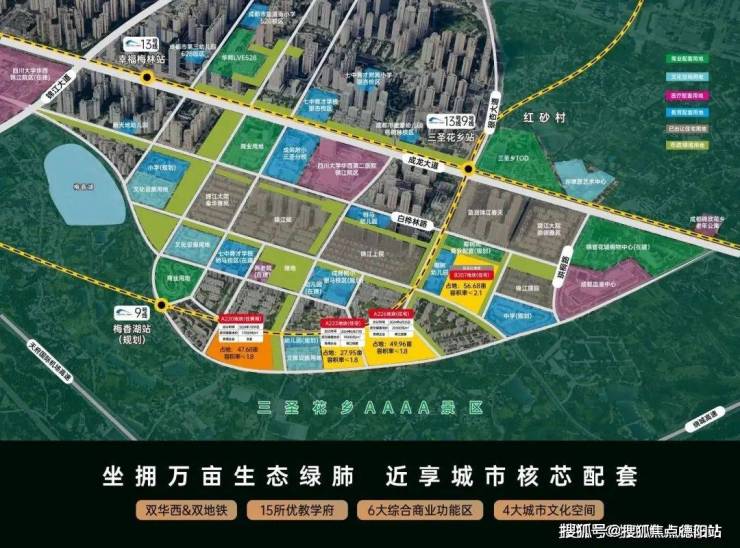 六条城市主干道构成"三横三纵"路网,快速连接金融城、东大街等核心商圈;三大TOD枢纽(三圣乡/林家坝/川师)环伺,汇聚2/7/9/13/20号线五条地铁;双机场通达优势:20公里直达双流机场,50公里接驳天府国际机场。