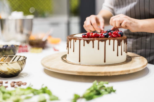 ▲现场为手工蛋糕裱奶油