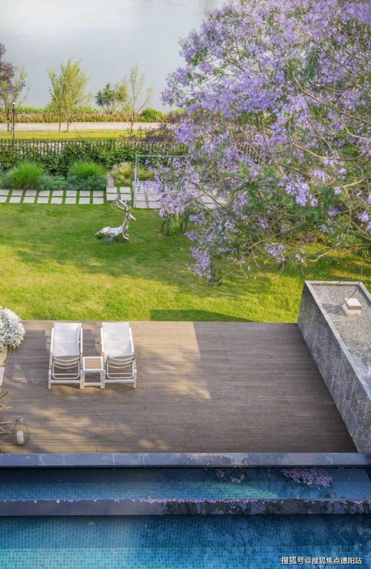 并通过花园的上下错层和平面错开布置,通过增设隐私挑板,造型遮挡墙等方式,让此超四代宅实现了更好的隐私保护。
