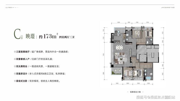 建面约173㎡四室两厅三卫