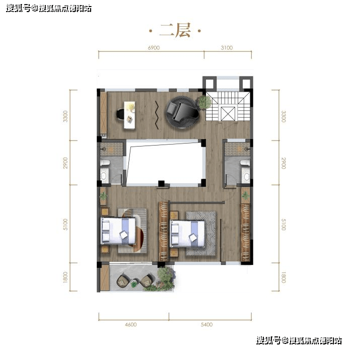 二层双卧双卫一书房一阳台,是家人区也可以做客房,舒适度足够;三层整层都做主卧,独立卫浴、衣帽间、独立书房都有,还有两个大露台,满足对生活的所有想象。