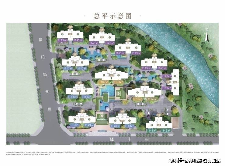 ▌【景观篇】 14%软景中水景占比约14%,媲美百亩级大盘水景规划引水入园,打造三大中庭水景,总计约1400㎡水系面积。甄选紫薇、泰山油松、蓝花楹等全球名木,匠造九章景观节点。