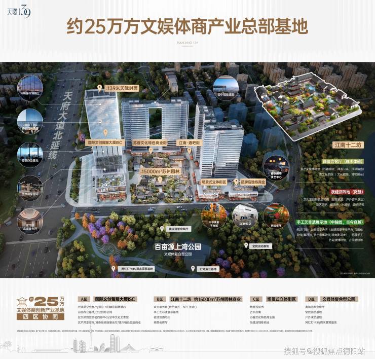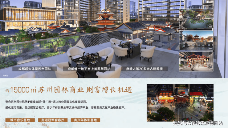•约25万方苏州园林综合体——15000㎡园林IP商业+外广场+源上湾公园,文旅一体消费体验。