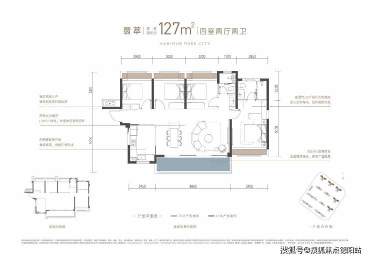 建面约127㎡的户型奢配6.9米大开间、超55㎡洄游式大横厅,均衡“大四房”,真正的舒适平权四房。