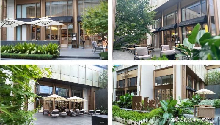 ①情景花园式商铺:精致的植物结合台地呈现商业空间的边界,自然与商业交融;沿街地面全部通铺福鼎黑石英砖,彰显高奢多元的气质;两侧设置银杏宅灯……营造游逛体验,触及更多消费可能