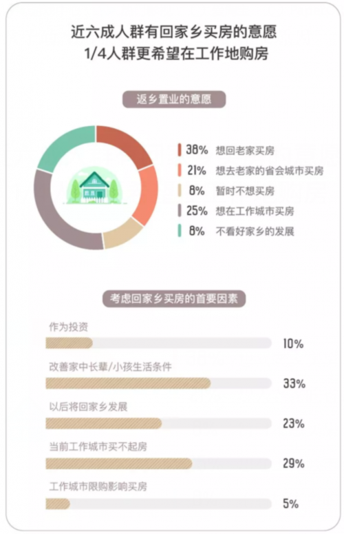 近年来,越来越多的人有回家乡买房的意愿”。一线城市的房价动辄几万元一平,很多“漂一族”在大城市买不起房,返乡置业也在意料之中。