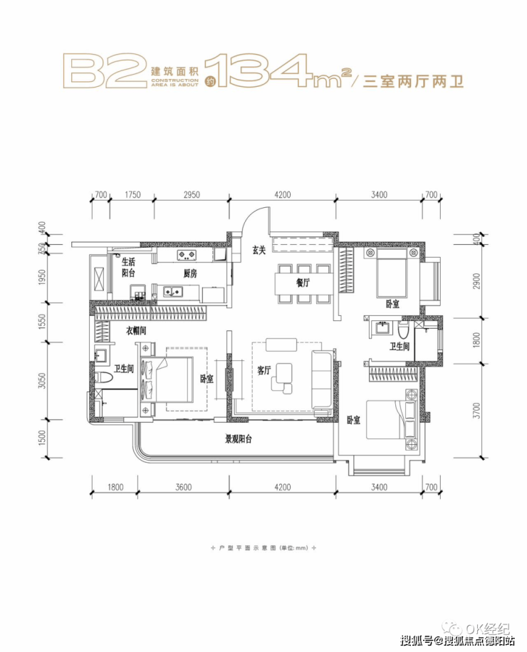 ☆B2 建筑面积约134㎡ 三室两厅两卫