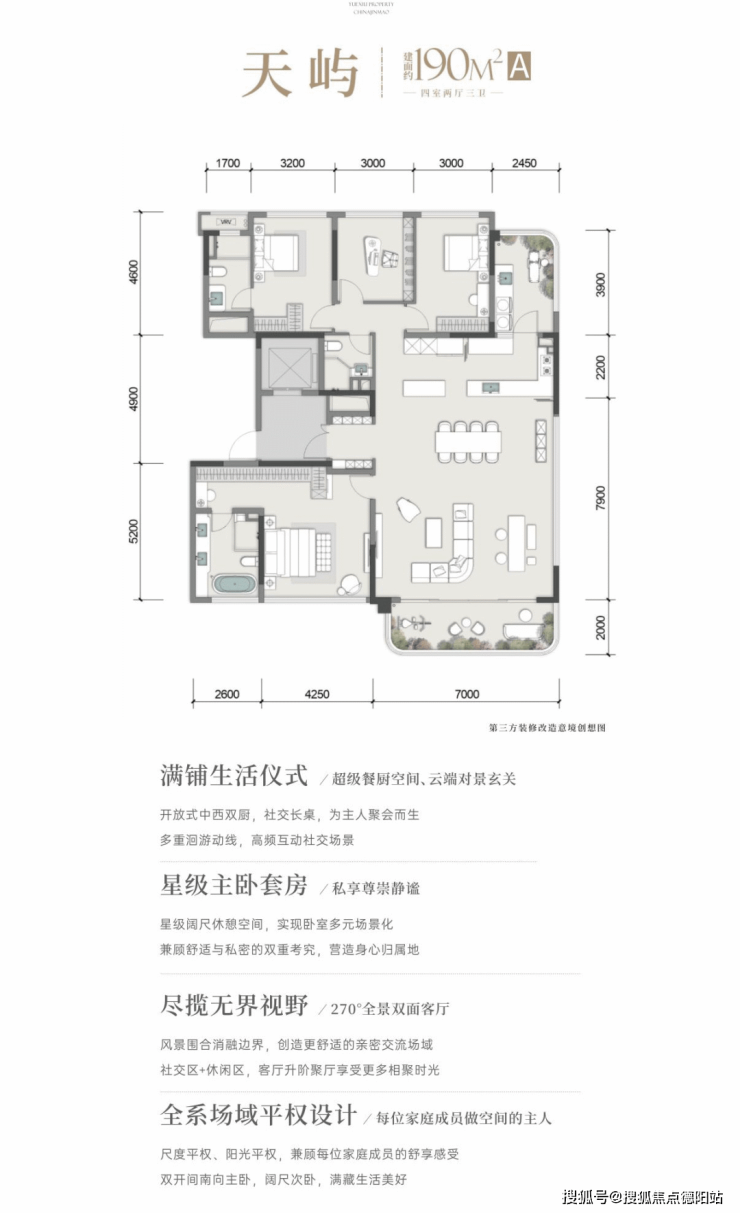 臻选户型:143㎡漫屿(四房两厅双卫)/190㎡天屿&鹭屿(四房两厅三卫)