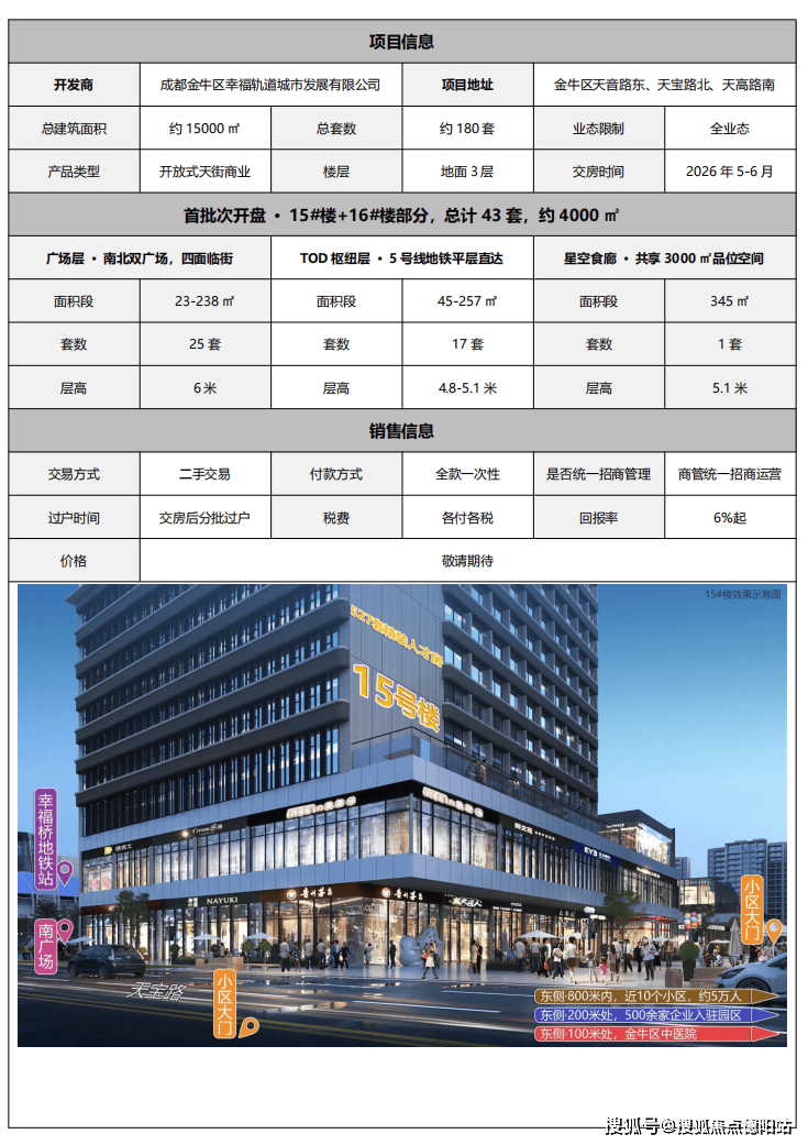 幸福桥TOD商业街,城北新城的璀璨明珠即将绽放!2025年8月23日,本周末震撼开盘。双地铁黄金动脉在此交汇,5号线零距离接驳,让繁华触手可及。8大品质社区簇拥,自带1800户精英家庭汇聚,消费动能澎湃如潮。举步100米可达金牛区中医医院,六所优质学府环绕,全维生活圈已然成型。这里是城北未来商业心脏,财富浪潮的第一站,抢占核心铺位的黄金时刻就在眼前!