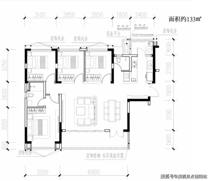 •总层高:二期12-17F(一楼4.5米架空层无住宅)三期9-17F