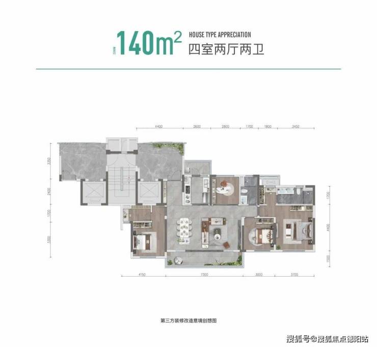 宽境奢阔四房,超宽楼间距中庭景观、双套房设计、总统主卧套房。