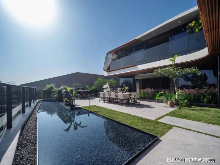 并通过花园的上下错层和平面错开布置,通过增设隐私挑板,造型遮挡墙等方式,让此超四代宅实现了更好的隐私保护。