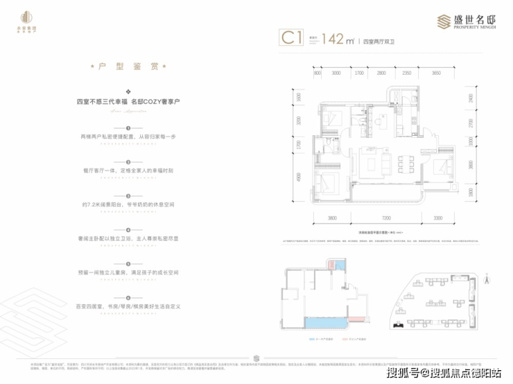 C1户型 142㎡四房:宽厅设计,270°观景阳台,定义轻奢生活